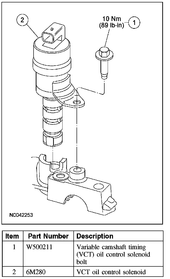 VARIABLE CAMSHAFT TIMING (VCT) OIL CONTROL SOLENOIDRemoval and Installation