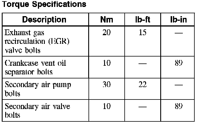 Torque Specifications: