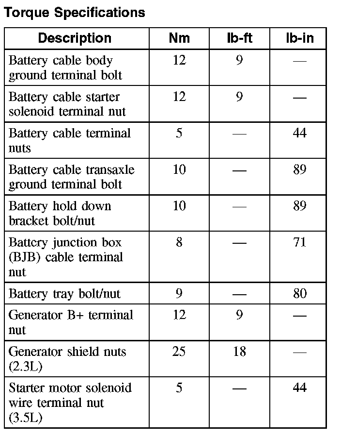 Torque Specifications: