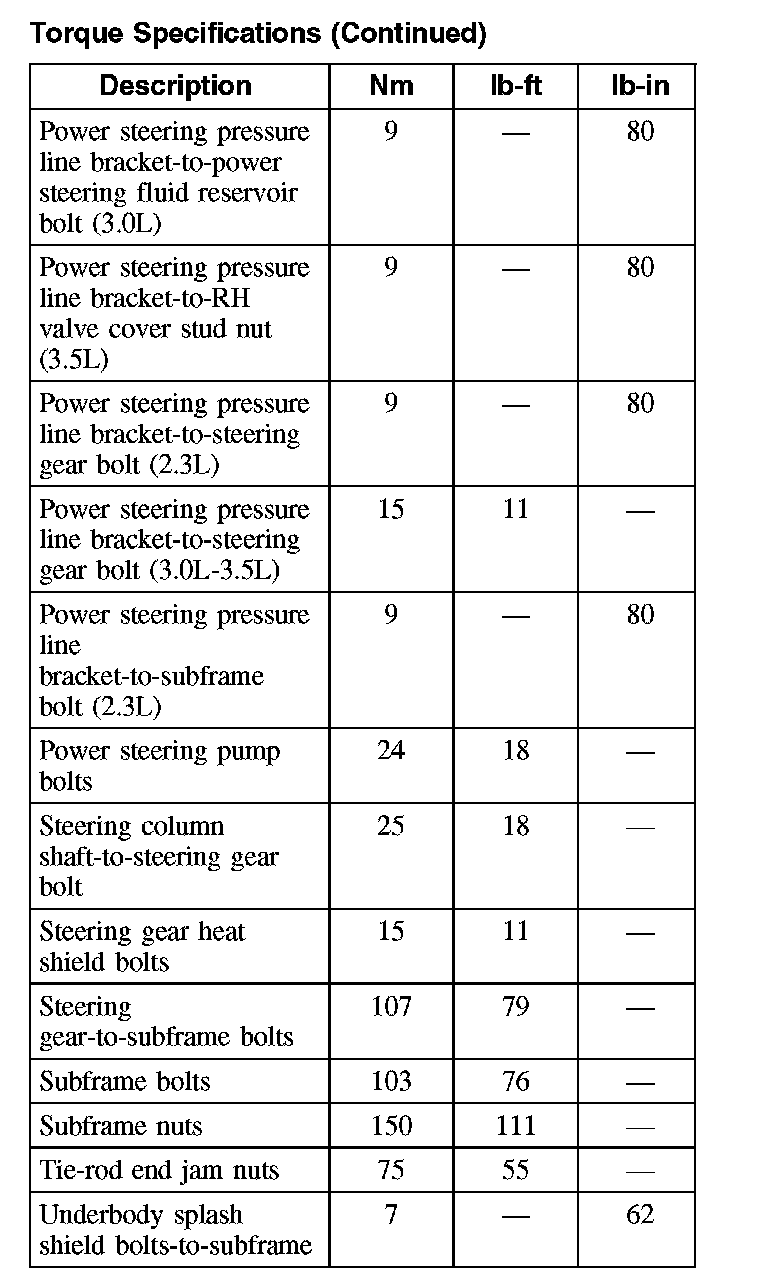 Torque Specifications (Continued):