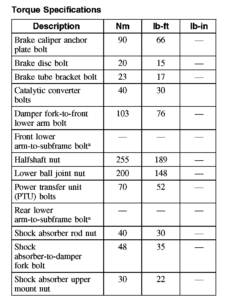 Torque Specifications: