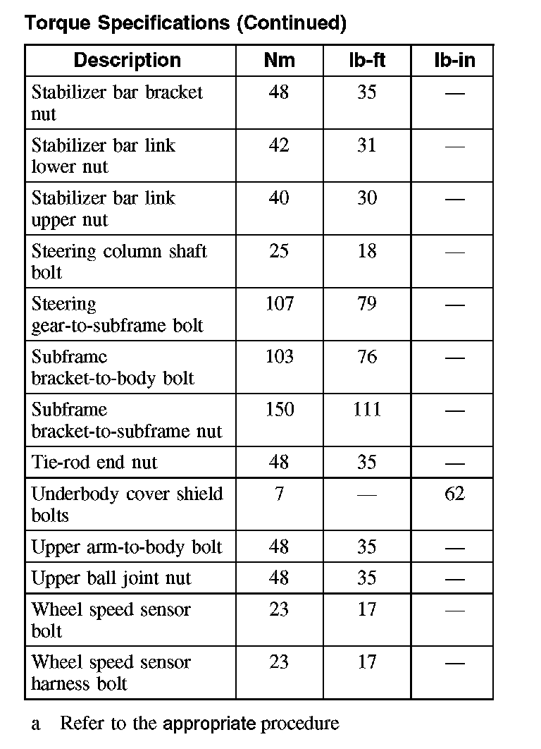 Torque Specifications (Continued):