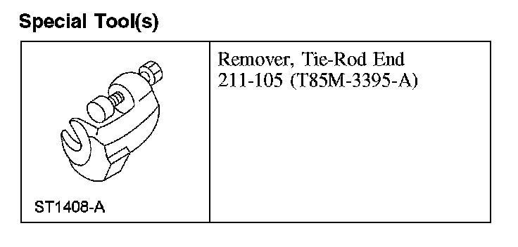 11. CAUTION: Do not use a hammer to separate the tie-rod end from the wheel knuckle or damage to the wheel knuckle can result.