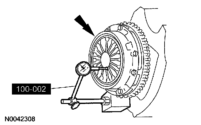 7. CAUTION: If the clutch disc is saturated with oil, inspect the rear engine crankshaft seal or transmission input shaft seal for leakage. If leakage is found, install a new seal prior to clutch disc installation.
