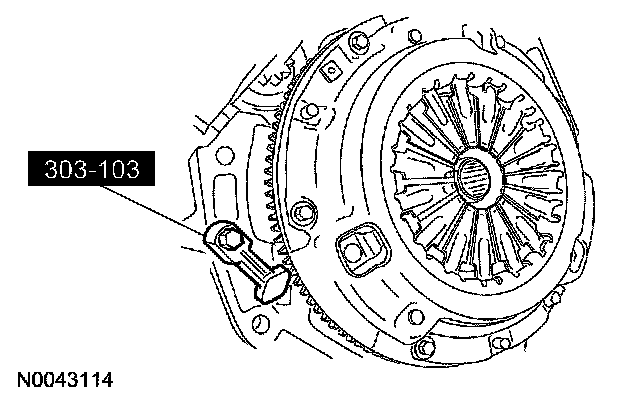 Using a suitable clutch disc aligner, remove the bolts, the clutch pressure plate and the clutch disc.