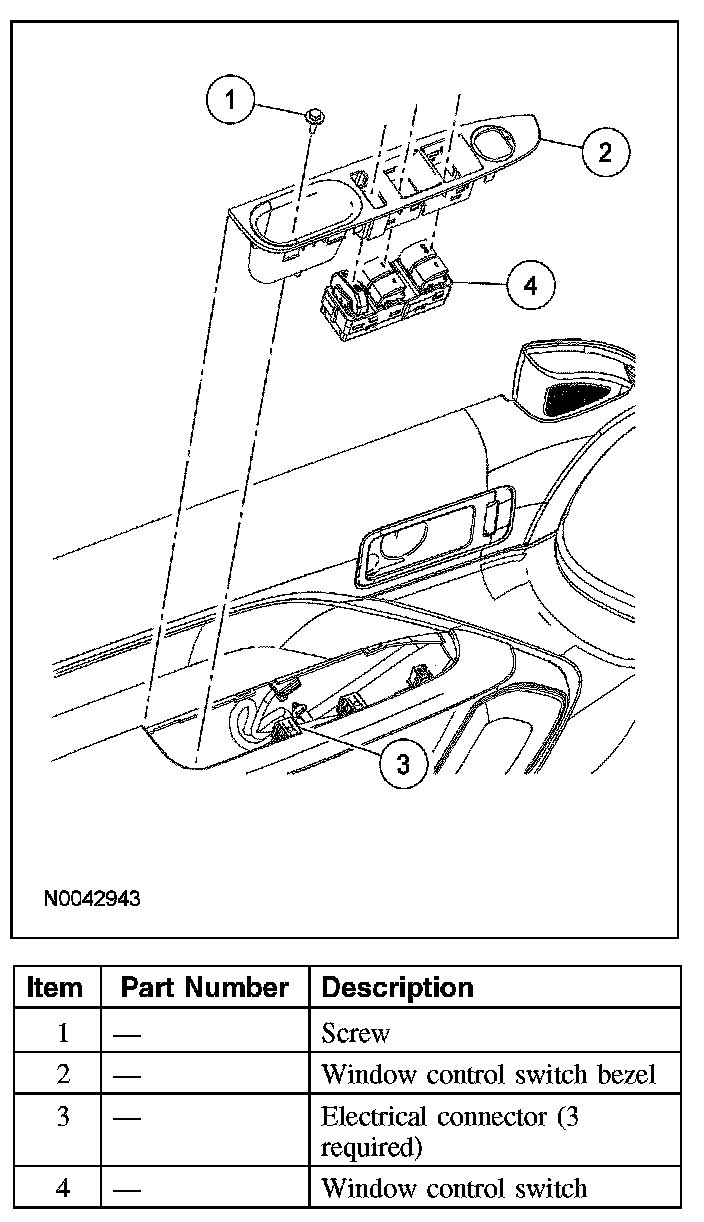 1. Remove the window regulator control switch bezel.