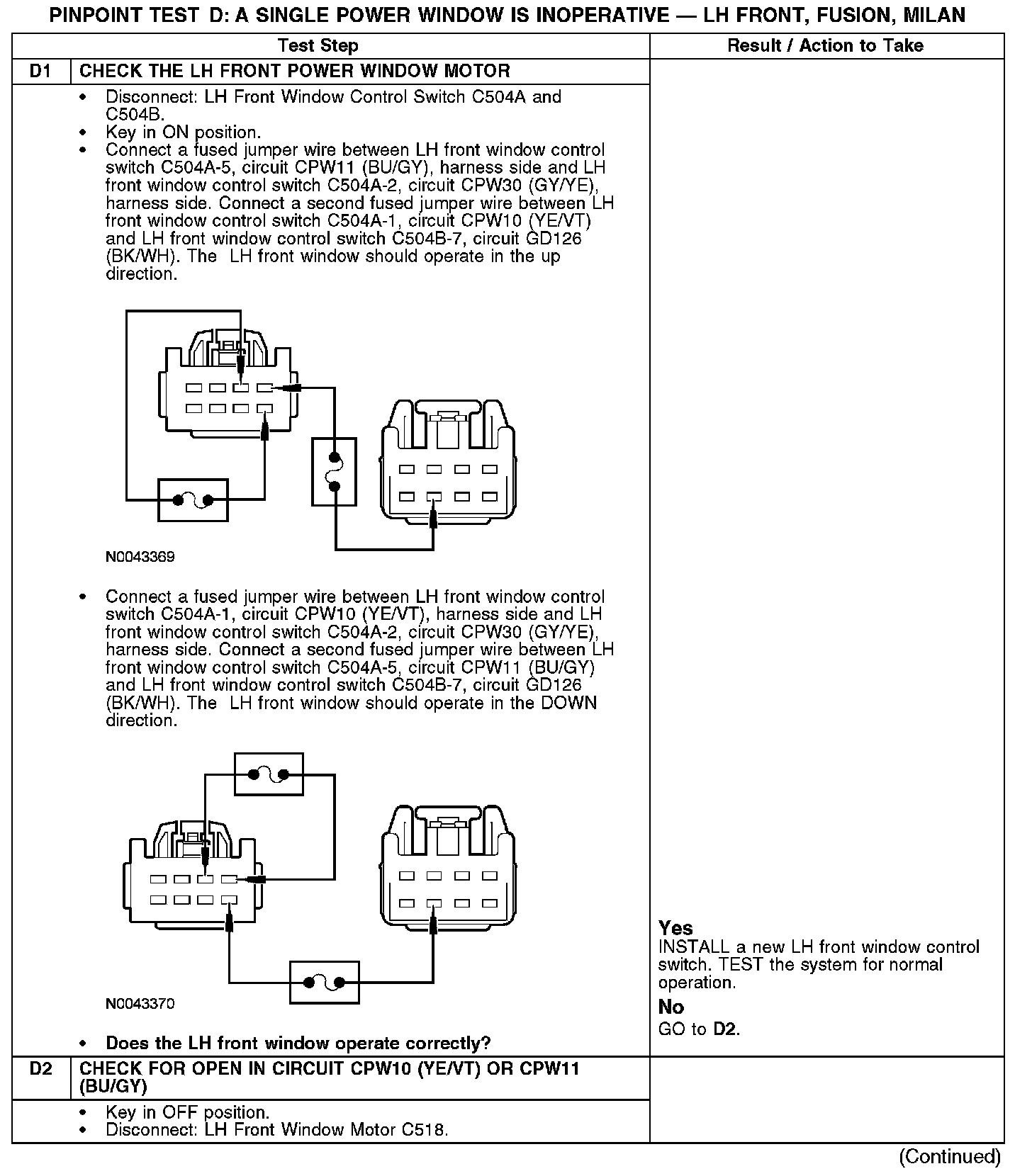 Test D: A Single Power Window Is Inoperative - LH Front
