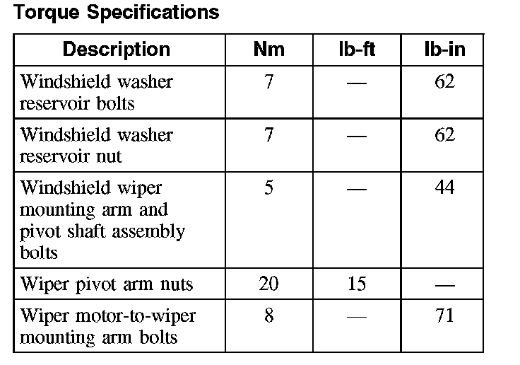 Wiper and Washer Systems: Specifications
