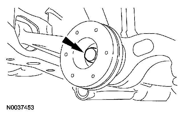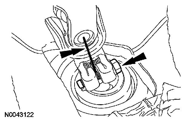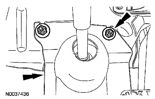 25. CAUTION: When the lower ball joint is separated from the wheel knuckle, the lower arm may strike the outer constant velocity (CV) joint boot with enough force to damage the boot clamp. This will result in a loss of grease from the outer CV joint. Place a block of wood, or similar item, between the lower arm and the outer CV joint to prevent the lower arm from striking the outer CV joint.