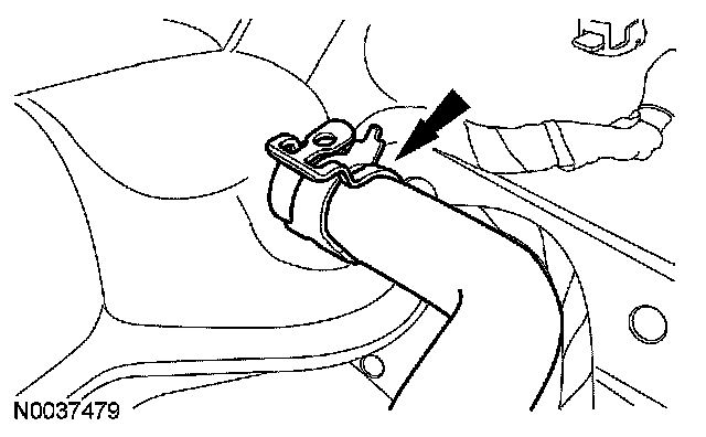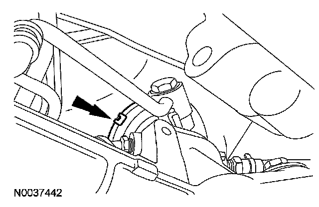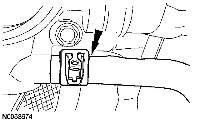 54. Detach the power steering hose retaining clip from the LH valve cover stud bolt and the engine wiring harness.