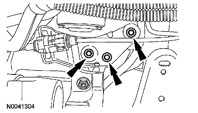 48. Remove the 3 transaxle control cable bracket bolts and position the cable aside.