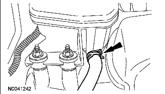 42. Disconnect the heater hose from the thermostat housing.