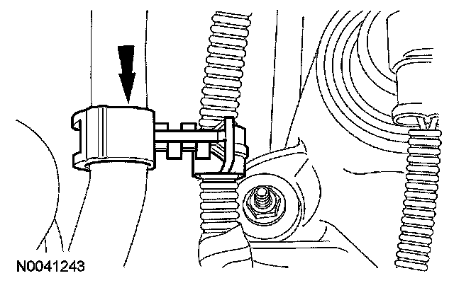 40. Disconnect the powertrain control module (PCM) electrical connector and the pin-type retainer.
