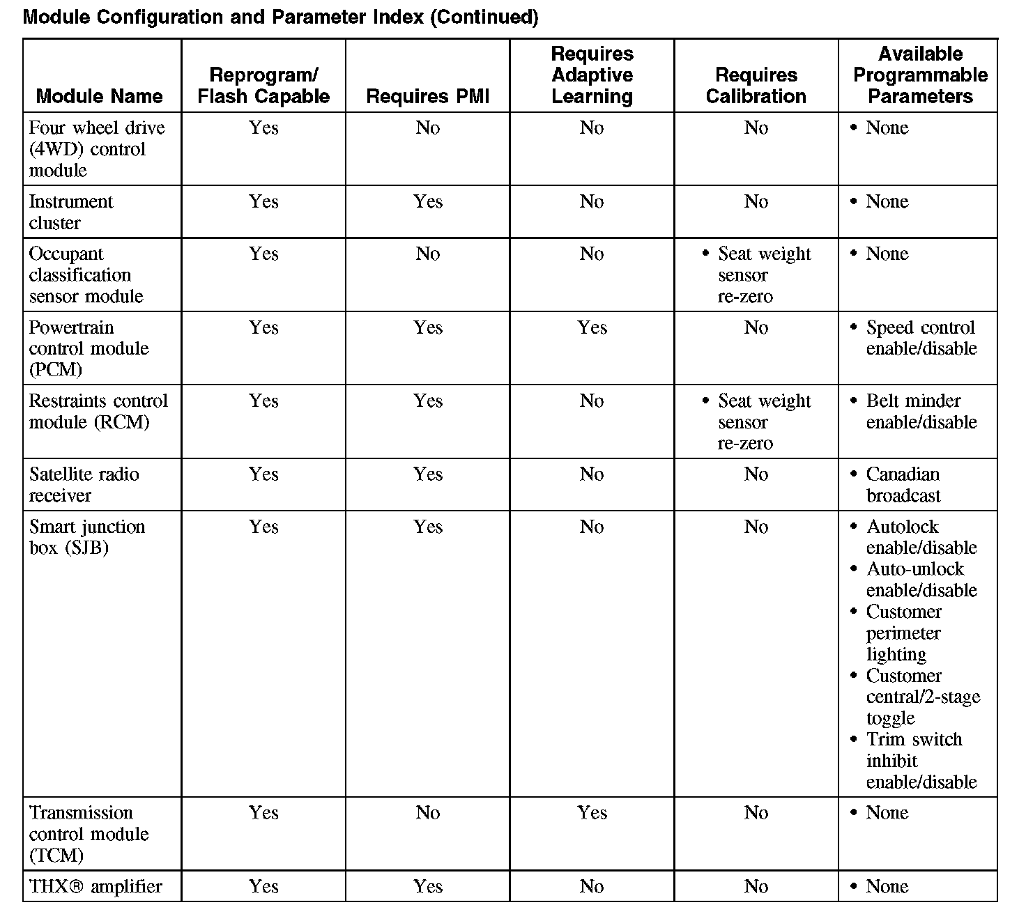 Programmable parameters are customer preference items that may be modified by the dealer via scan tool or in some cases modified by the customer following a procedure listed in the vehicle Owner's Literature. While many configuration options may exist for a module, only a few of these options are programmable parameters.