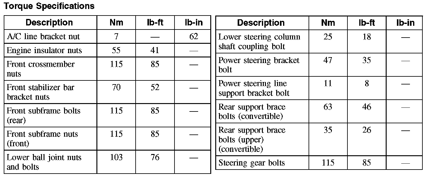 Torque Specifications: