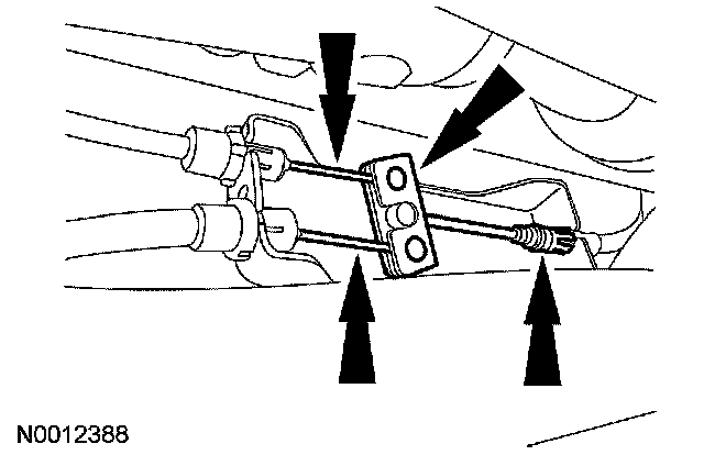 4. Disconnect the front parking brake cable from the 2 rear parking brake cables at the equalizer and release the front cable from the body bracket.