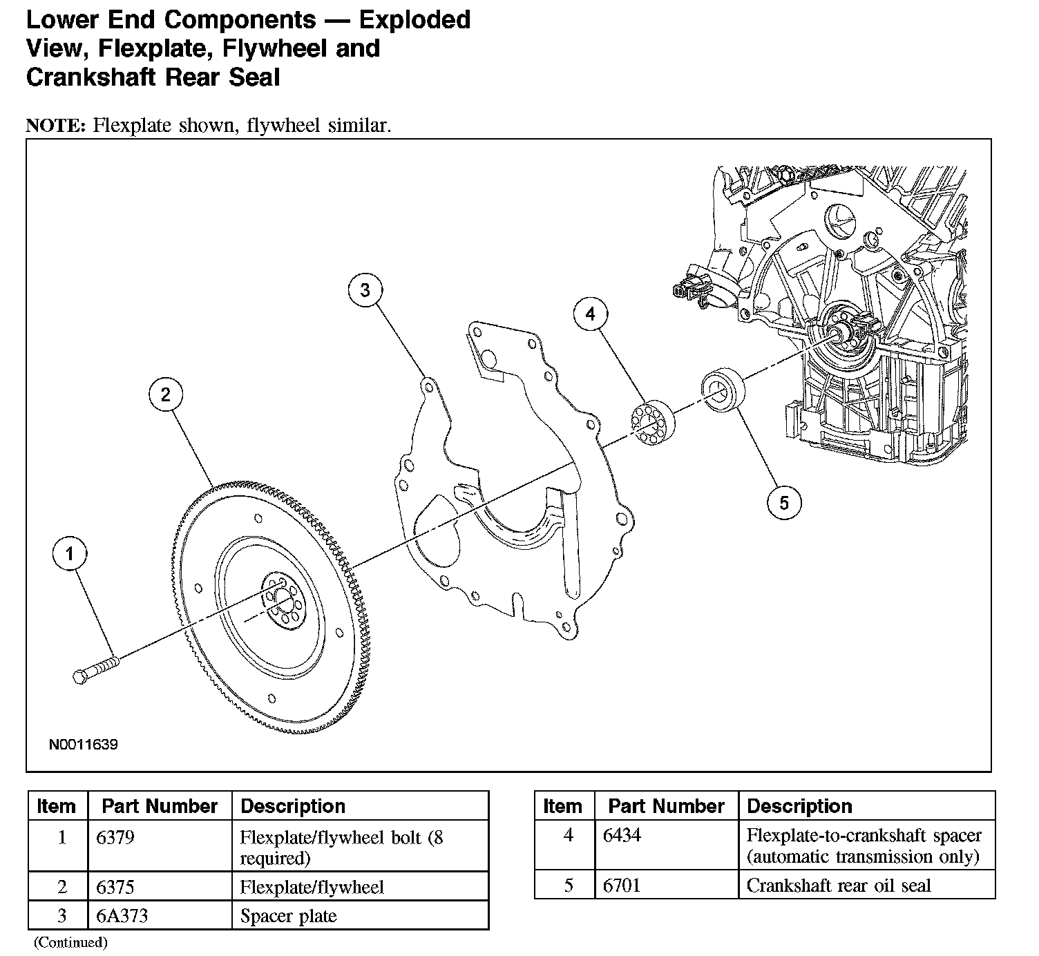 Lower End Components - Exploded View, Flexplate, Flywheel and Crankshaft Rear Seal: