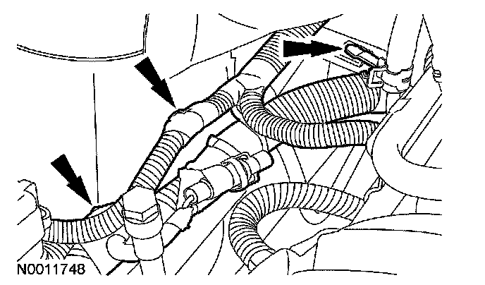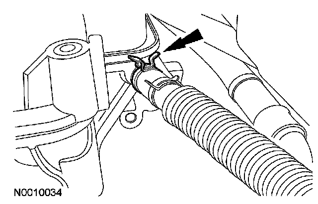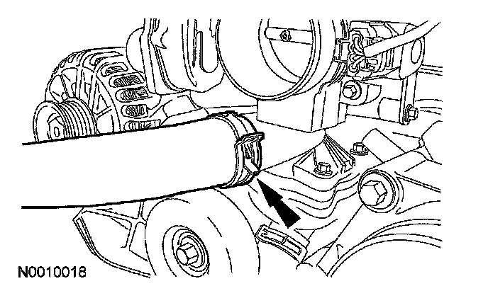 - Detach the heater hose bracket from the RH valve cover.