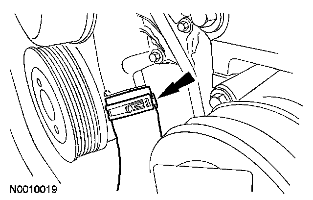 23. Rotate the accessory drive belt tensioner counterclockwise and remove the accessory drive belt.