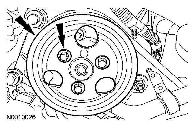 24. Remove the 3 bolts and the power steering pump pulley.
