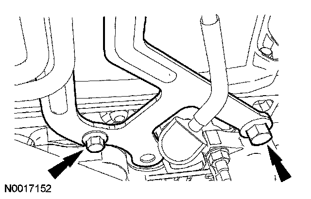 28. Remove the 2 coolant tube bracket bolts.