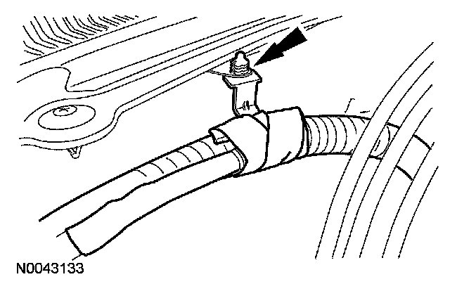 45. Detach the battery cable harness pin-type retainer from the cowl.