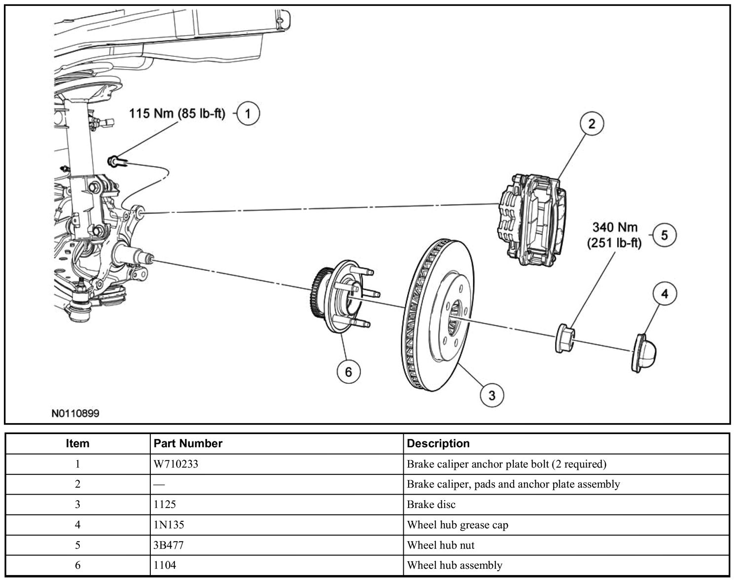 - To install, tighten the new nut to 340 Nm (251 lb- ft).