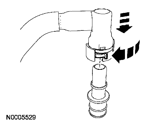 Depress the retainer clip until it is flush with the quick connect coupler housing and it is fully seated on the tube.