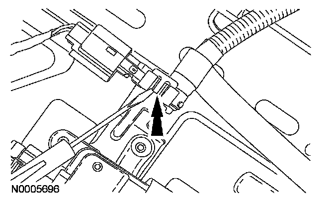 8. Install the pressure sensor onto the seat cushion frame bracket, making sure the retaining tab is completely engaged.