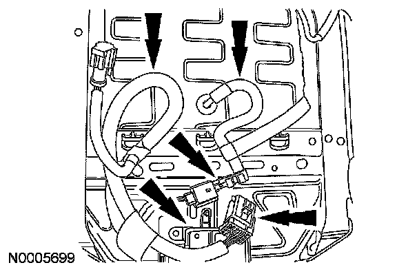 Release all the seat wire harness routing clips and electrical connector retainers from the seat cushion frame assembly.