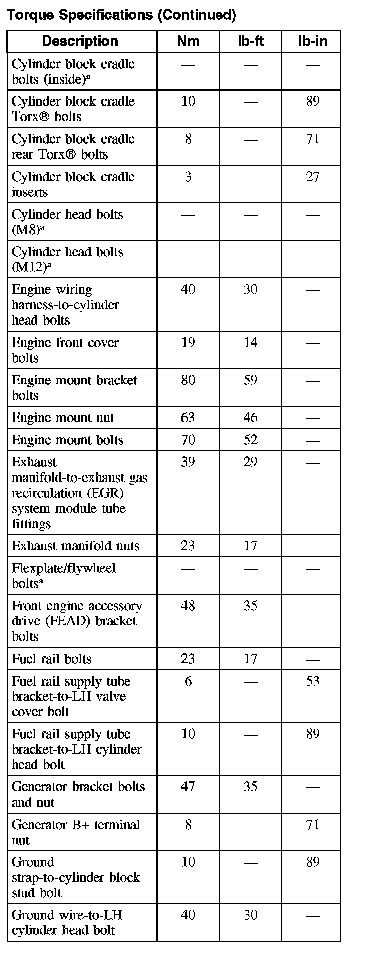 Torque Specifications