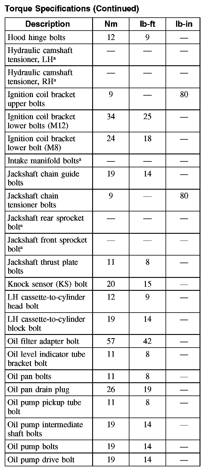 Torque Specifications: