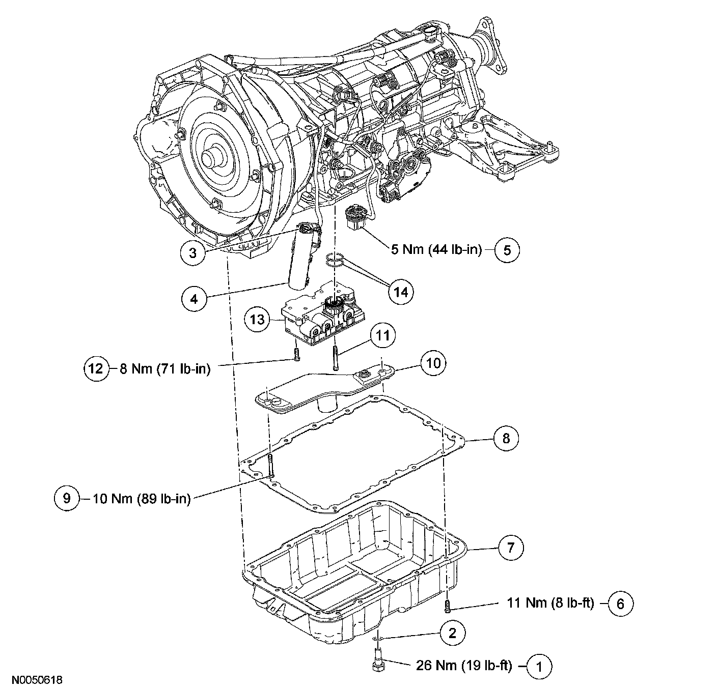 5. NOTE: The transmission fluid pan gasket is reusable, clean and inspect for damage. If not damaged, the gasket should be reused.