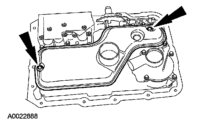 Remove the transmission fluid pan screws, gasket and fluid pan.