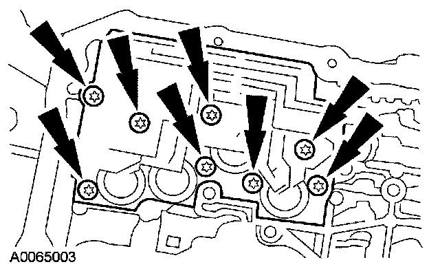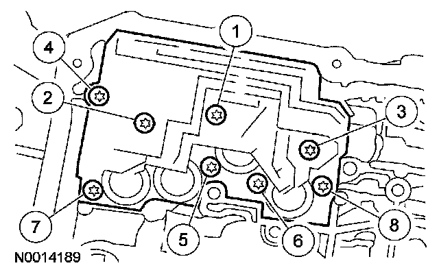 Install the solenoid body. Tighten the screws in the sequence shown.