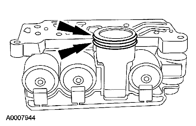 1. Install new O-ring seals on the solenoid body connector. Lubricate the O-ring seals with clean automatic transmission fluid.