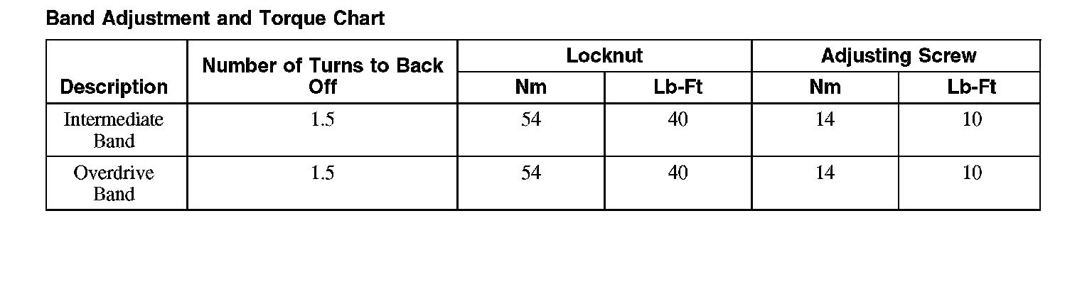 Band Adjustment and Torque Chart:
