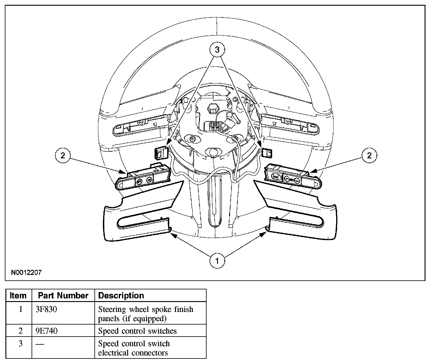 3. NOTE: Using a small, flat-bladed screwdriver, gently pry up the speed control switches from the steering wheel, beginning at the outer edge. Use care not to damage the steering wheel.