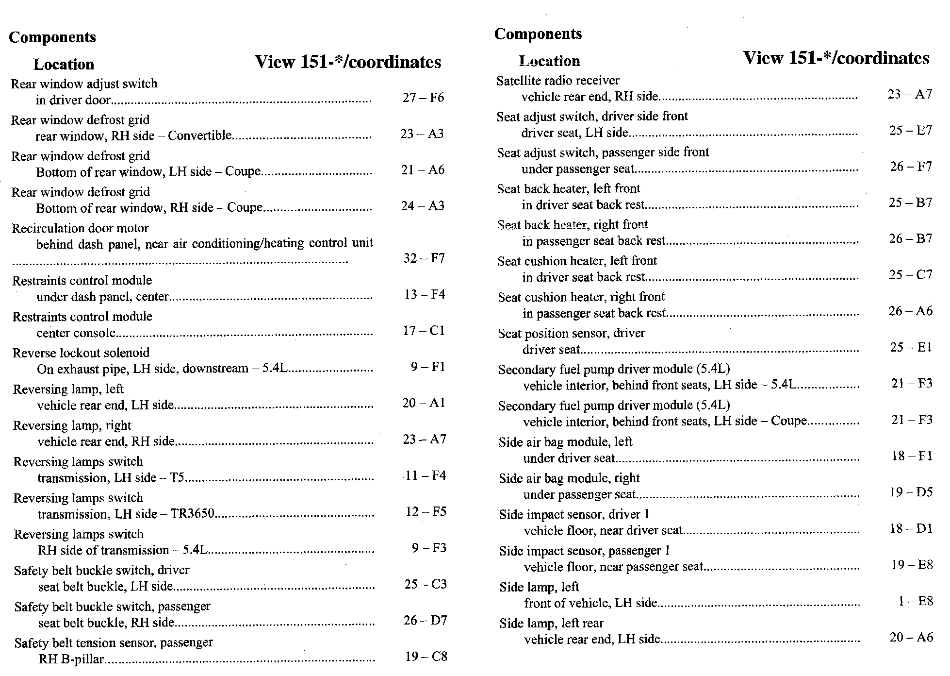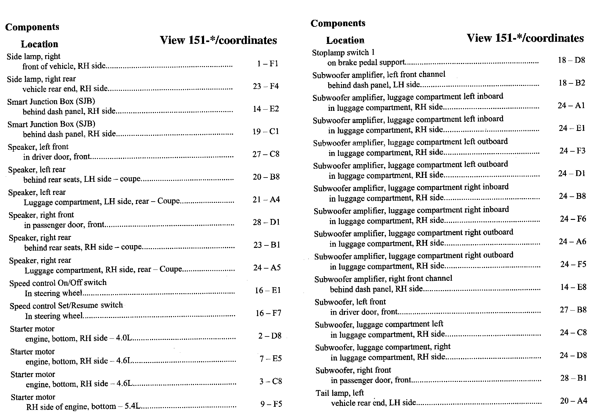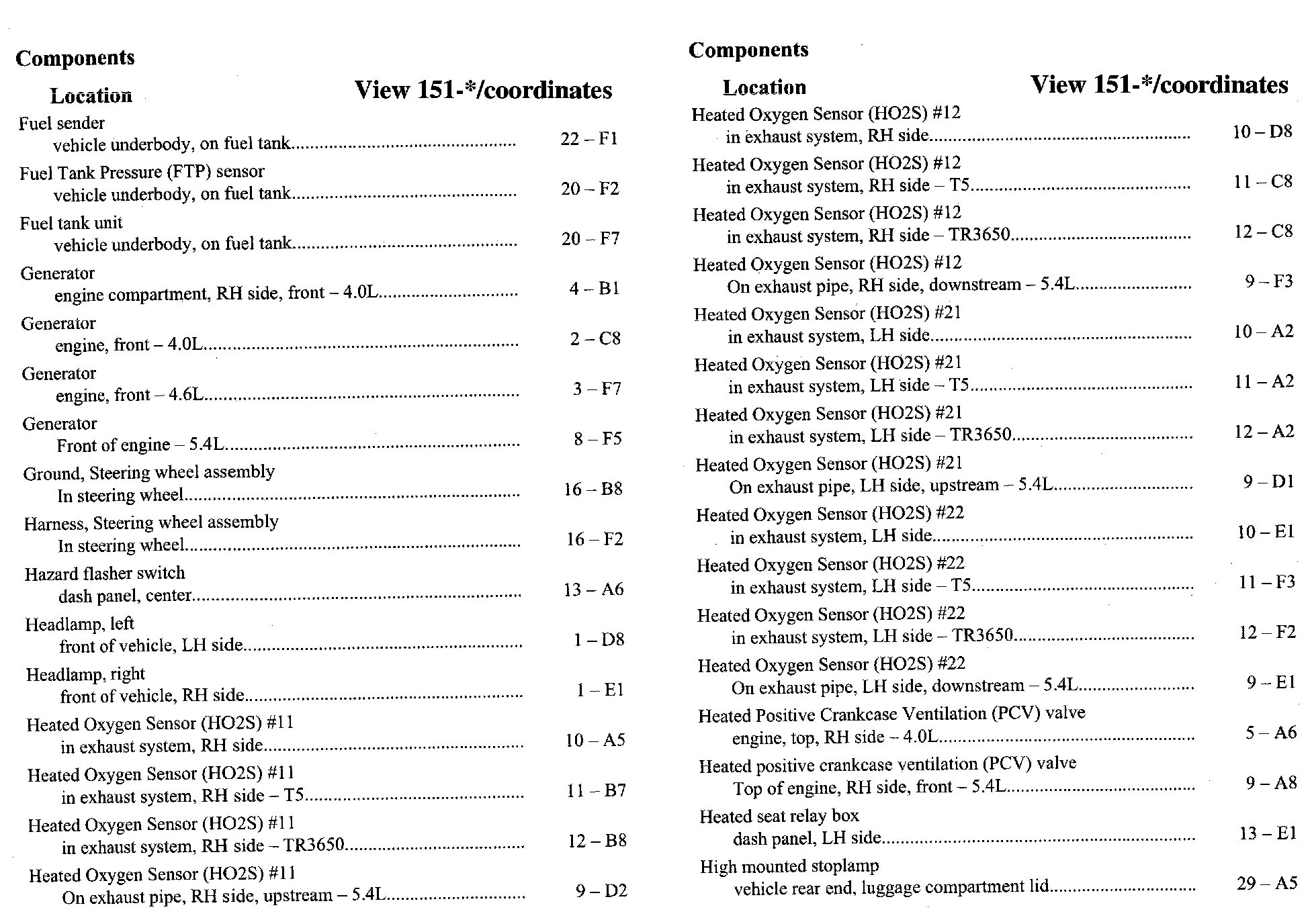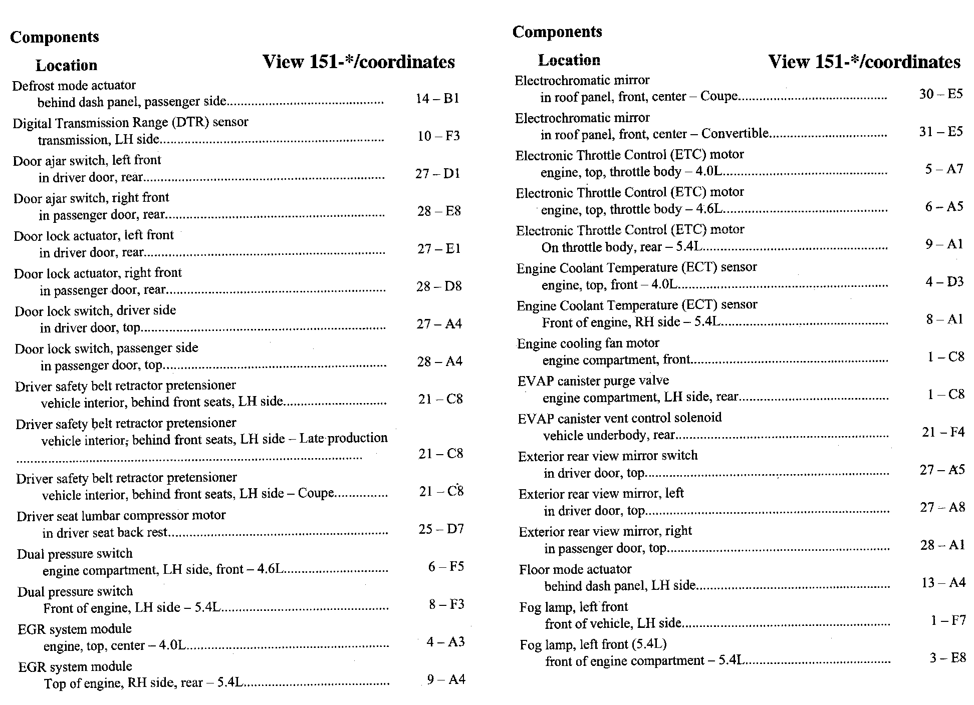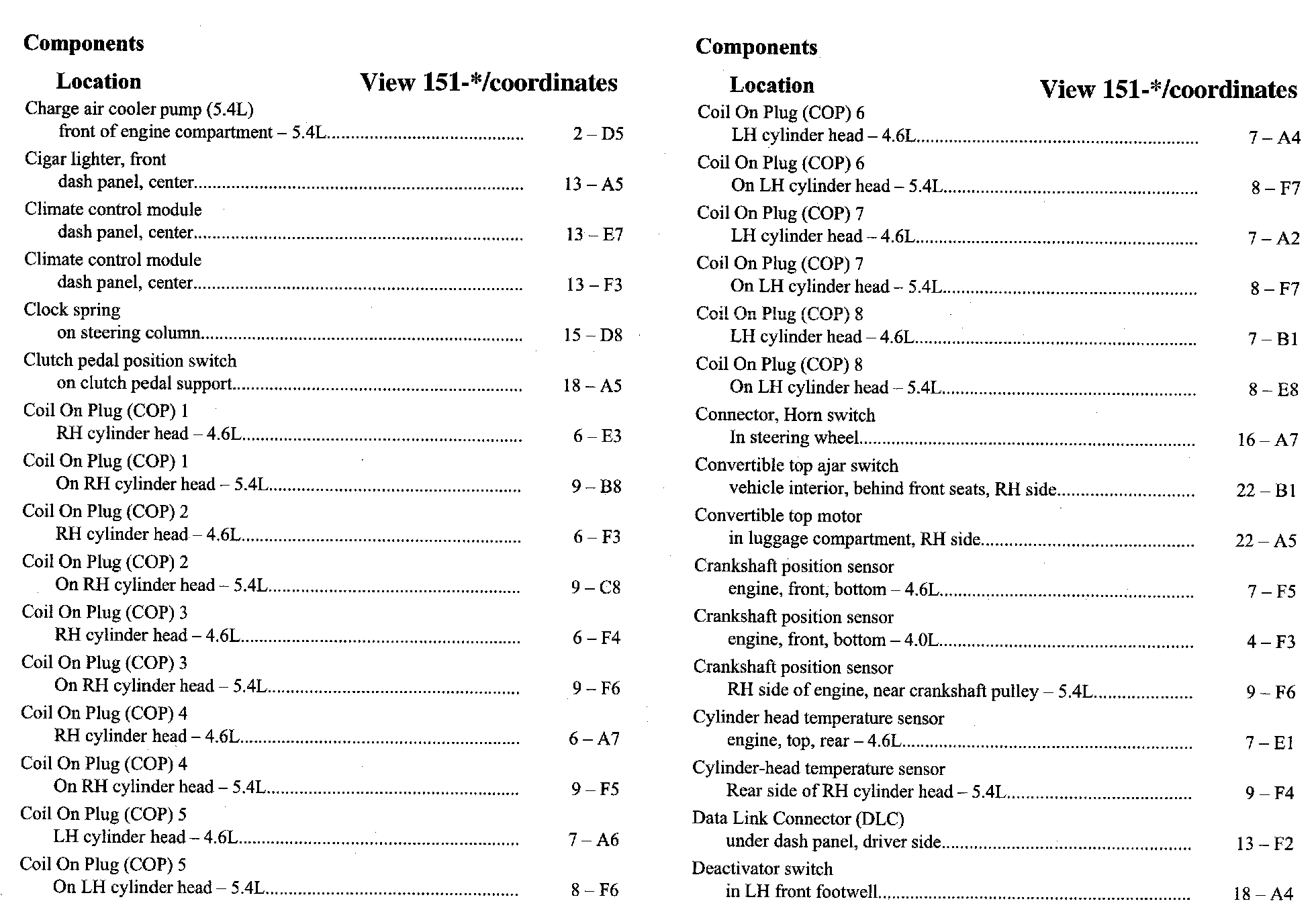 Component Location Index