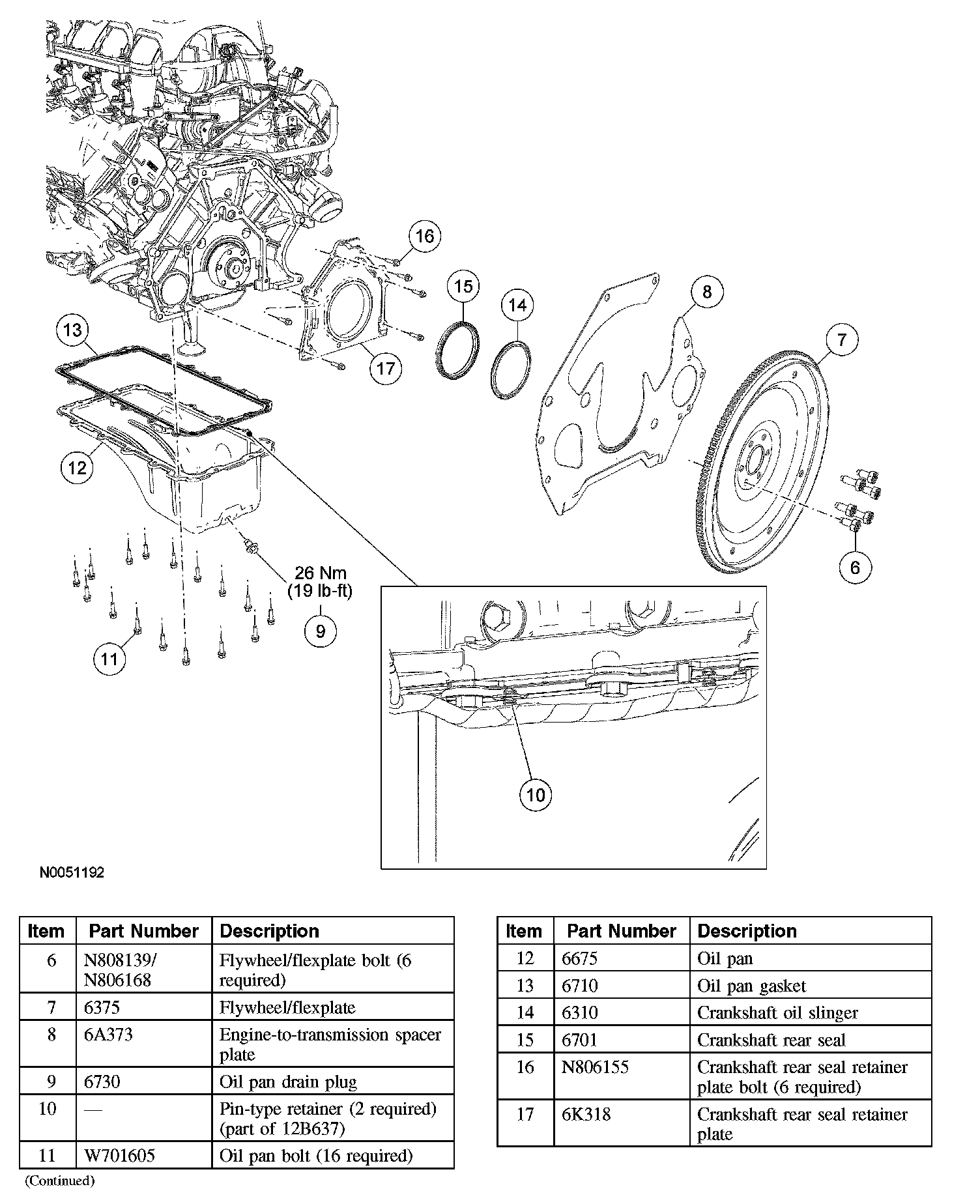 Lower End Components - Exploded View, Flexplate, Flywheel and Crankshaft Rear Seal: