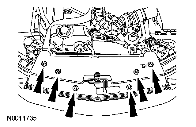 CAUTION: Do not position the legs of the special tool (3-bar engine support) on the fenders. Instead, the legs should be positioned on the body structure near the suspension strut tower.