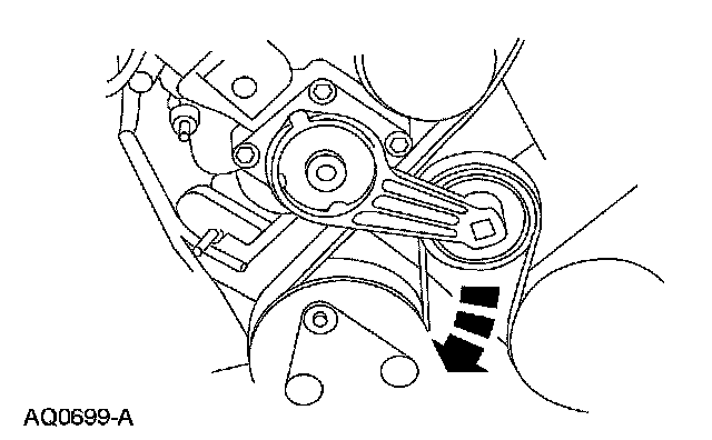 12. Rotate the accessory drive belt tensioner clockwise and remove the accessory drive belt.