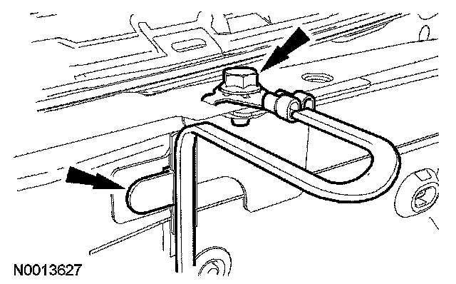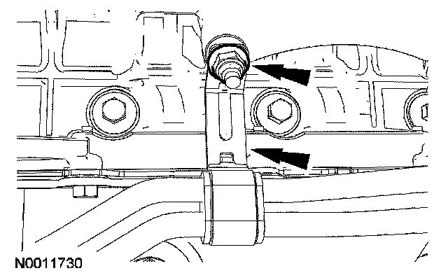 24. Remove the nut and position aside the transmission cooler tube bracket.