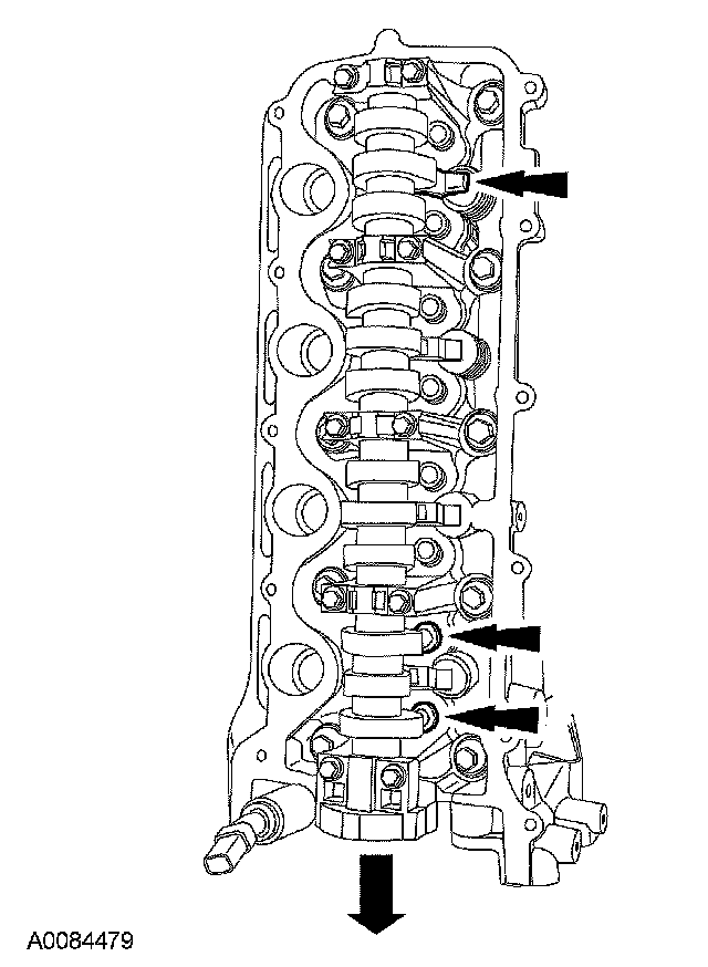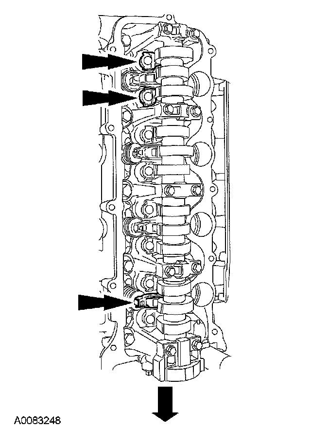 NOTE: The camshaft bearing caps must be installed in their original locations. Record camshaft bearing cap locations.