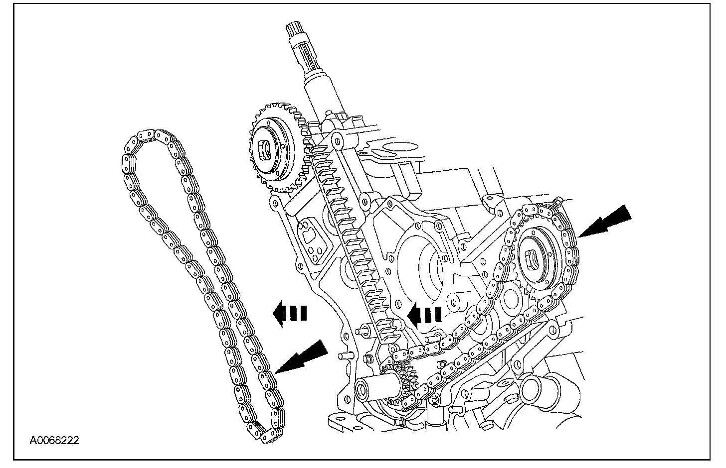 - Remove the LH timing chain and crankshaft sprocket.