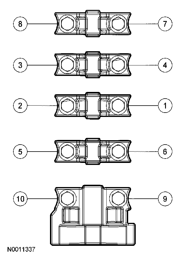 - Tighten to 10 Nm (89 inch lbs.) in the sequence shown.