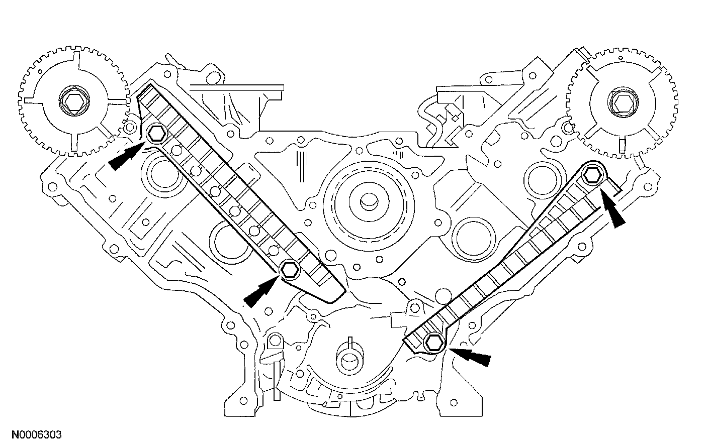 Remove the LH and RH timing chain guides.