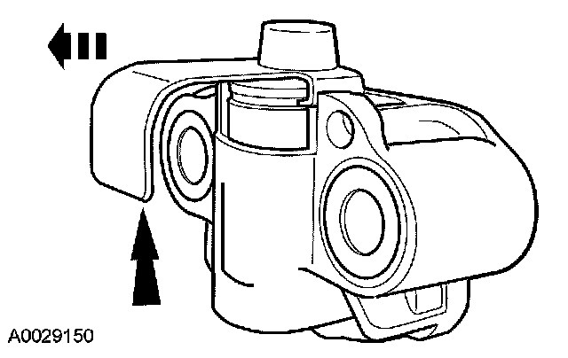 15. NOTE: The LH timing chain tensioner arm has a bump near the dowel hole for identification.