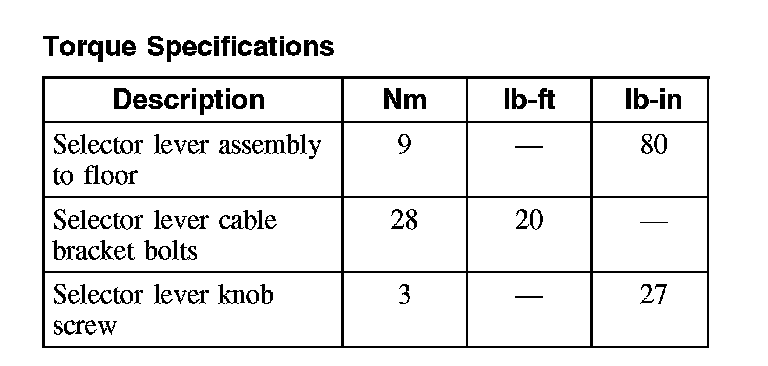 Torque Specifications: