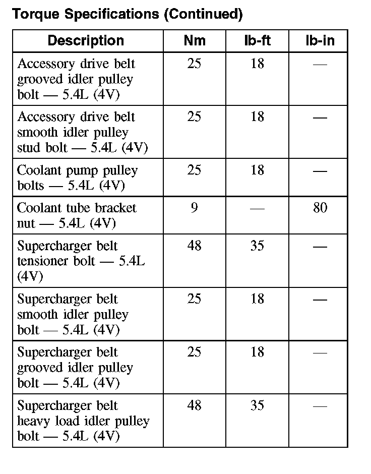 Torque Specifications: